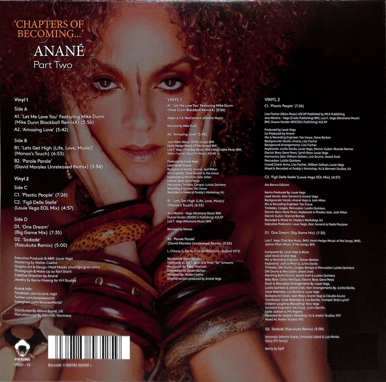 2020, 17 years later since her first studio session she has a repertoire of over 50 recordings, and has toured the world many times over. Today she has come together with Vega Records (the label of her first ever release) with her new Album project, “Chapters Of Becoming…” Anané, which transcends through her evolution of the artist and woman she is today. Little known fact, Anané’s mother is the famous Brazilian singer/songwriter Joyce. Possibly more well known, she is also married to Louie Vega.