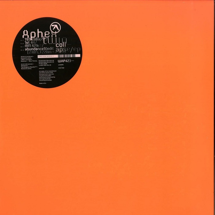 The Collapse EP is a juicy bag of delights. Extending the flamboyant paths that Aphex Twin has consistently managed to forge through his dizzying career. From the utterly exhilarating T69 collapse to the complete and utterly bonkers, instantaneous and life affirming abundance10edit[2 R8’s, FZ20m & a 909] featuring vertigo inducing high hats and sauntering arrangements with some brain scrambling noise thrown in for good measure!