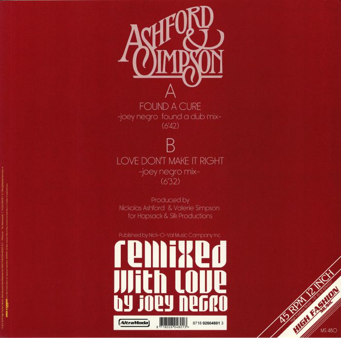 Joey Negro appears again on Dutch ”High Fashion Music” presenting on vinyl again his creative skills on these 2 Ashford & Sinpson classics!