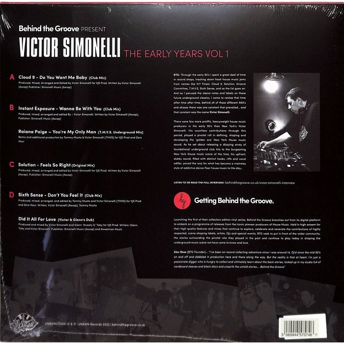 Launching the first Behind The Groove collectors edition vinyl series is New York’s finest Victor Simonelli with ‘The Early Years Vol 1 & 2’ double Vinyl releases. Featuring seminal house tracks such as Cloud 9’s ‘Do You Want Me’, Solution’s ‘Feel So Right’, Instant Exposure’s ‘Wanna Be With You’ and rare mixes of Raiana Page and EZ-AL, this collection brings together classic and rare Victor Simonelli cuts that reflect the early raw energy and buzz of the New York House scene. With ‘Vol 2” scheduled to follow shortly after, this is the most comprehensive collection of rare Simonelli cuts that firmly establishes his esteemed role in 90s House Music as well as introducing new fans to his inimitable sound.