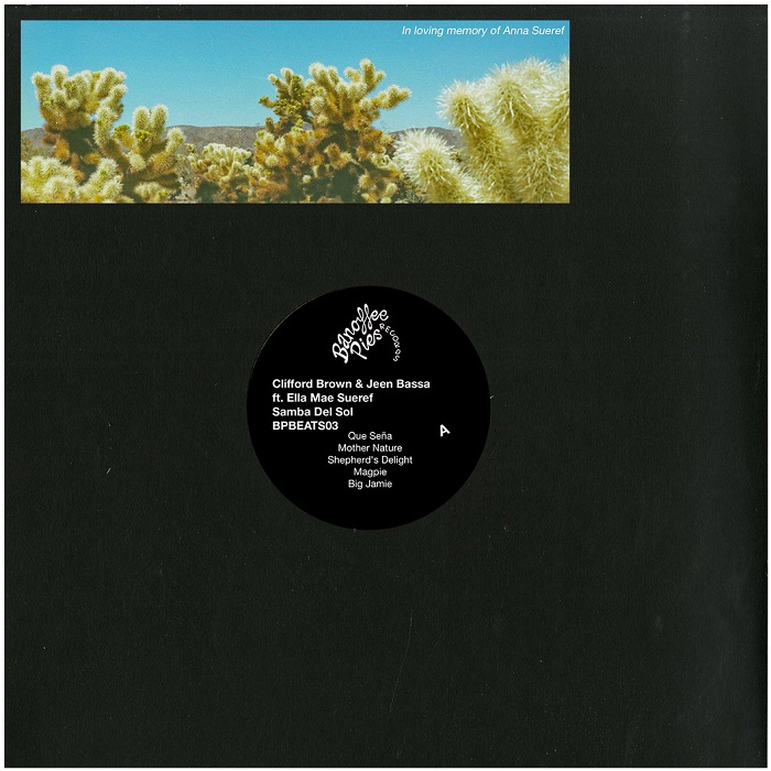 Banoffee Pies Records drop their third Beats release “Samba Del Sol” with Clifford Brown & Jeen Bassa Ft. Ella Mae Sueref – The album is influenced by Carnival and Latin sounds with Hip Hop drums and Soul roots – meeting in middle ground as an expression of the production duos upbringing; John’s heritage in Mauritius and Clifford’s childhood in South America. Partnered with Ellas Spanish language fluency and soft Badhu acclaimed voice as previously heard on the single “Stop Rewind” credited by the like of Giles Peterson and Mr. Scruff..