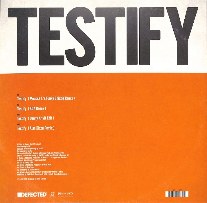 In times of trouble and uncertainty music can provide great relief for the soul, and DAVIE’s triumphant Defected debut ‘Testify’ does exactly that. A joyous introduction to the Brooklyn artist, this 12’’ remix package demonstrates an ability to strike the balance between classic and contemporary sounds seamlessly. Now, the record DAVIE himself describes as, “a dance song, not a gospel song,” gets four brand new remixes. Up first on the A side, Peppermint Jam boss Mousse T. plays to the gospel elements of the original, with deep, powerful chords and rhythmic claps, bringing a snapping groove to the cut. Next, London talent KDA goes for a clubbier sound, looping the vocal and raising the BPM. On the flip, undisputed master of the disco edit Danny Krivit delivers his sublime club-friendly version, extending the original Danny maintains the feel, with subtle adjustments that give it a more refined sound. Finally, Alan Dixon’s funk-fuelled remix follows, with melodic keys and irresistible horns.