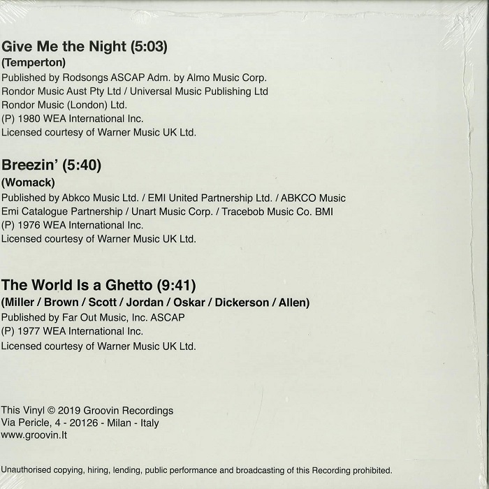 Italian reissue of classic George Benson tracks. On the A side we get the much sampled and probably George’s best known track Give Me The Night. Everybody from Moodymann (January) and Austin Auto to Jazzy Jeff and Heavy D & the Boyz have used this in their productions. It’s a guaranteed floor filler.