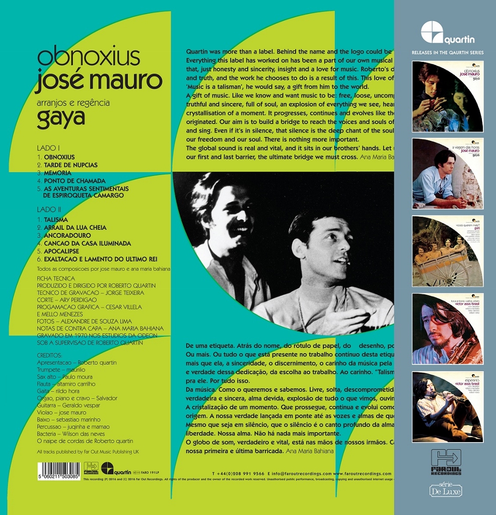“Far Out Recordings are thrilled to present the timeless, peerless and criminally undervalued Quartin catalogue to a whole new set of ears, including reissue masterpieces from Jose Mauro and Victor Assis Brasil.”