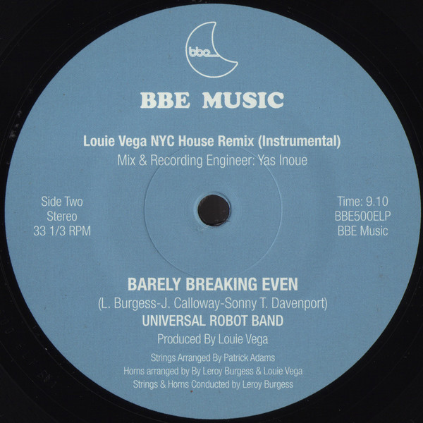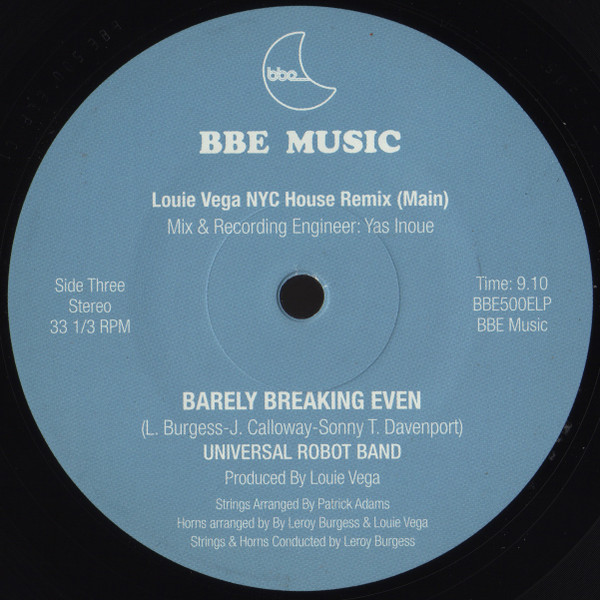 For BBE Music’s landmark 500th release, the label joins forces with Louie Vega, Leroy Burgess and Patrick Adams to revisit ‘Barely Breaking Even’, the iconic track after which the label is named.
