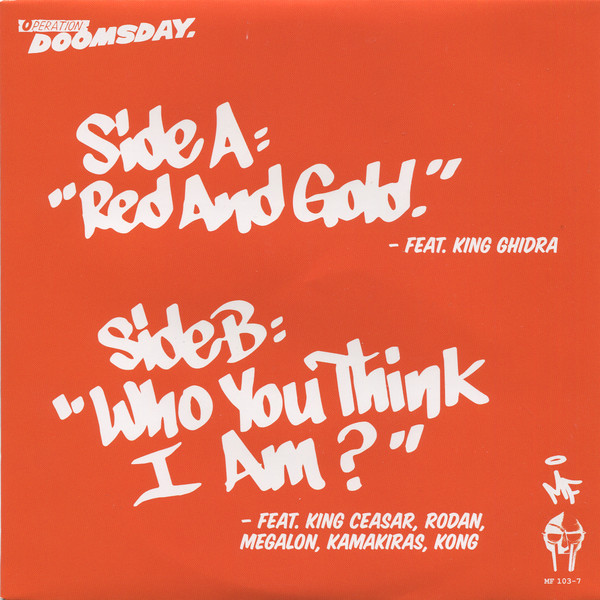 The artist formerly known as Zev Love X of major-label-but-underground heroes KMD had disappeared from most fans’ view in around 1994 – after his brother and artistic co-producer Subroc was killed, and the group’s Black Bastards album was shelved by Elektra. By 1997, DOOM started peeking his head up from the grime, with no-distribution singles on Bobbito Garcia’s Fondle ‘Em label like “Red & Gold” and “Dead Bent.” As other appearances and singles trickled through the underground, by 1999 the album Operation: Doomsday appeared seemingly out of nowhere, again on Fondle ‘Em, and fans who actively ran from the glitzier side of rap music ate it up like they had been on a hunger strike. Musically raw and at-times off-kilter, former Fondle ‘Em singles like the aforementioned tunes plus “Gas Drawls,” “Hey!” and “Go With The Flow” were joined by a whole slew of new tunes. It all sounded familiar but new at the same time.