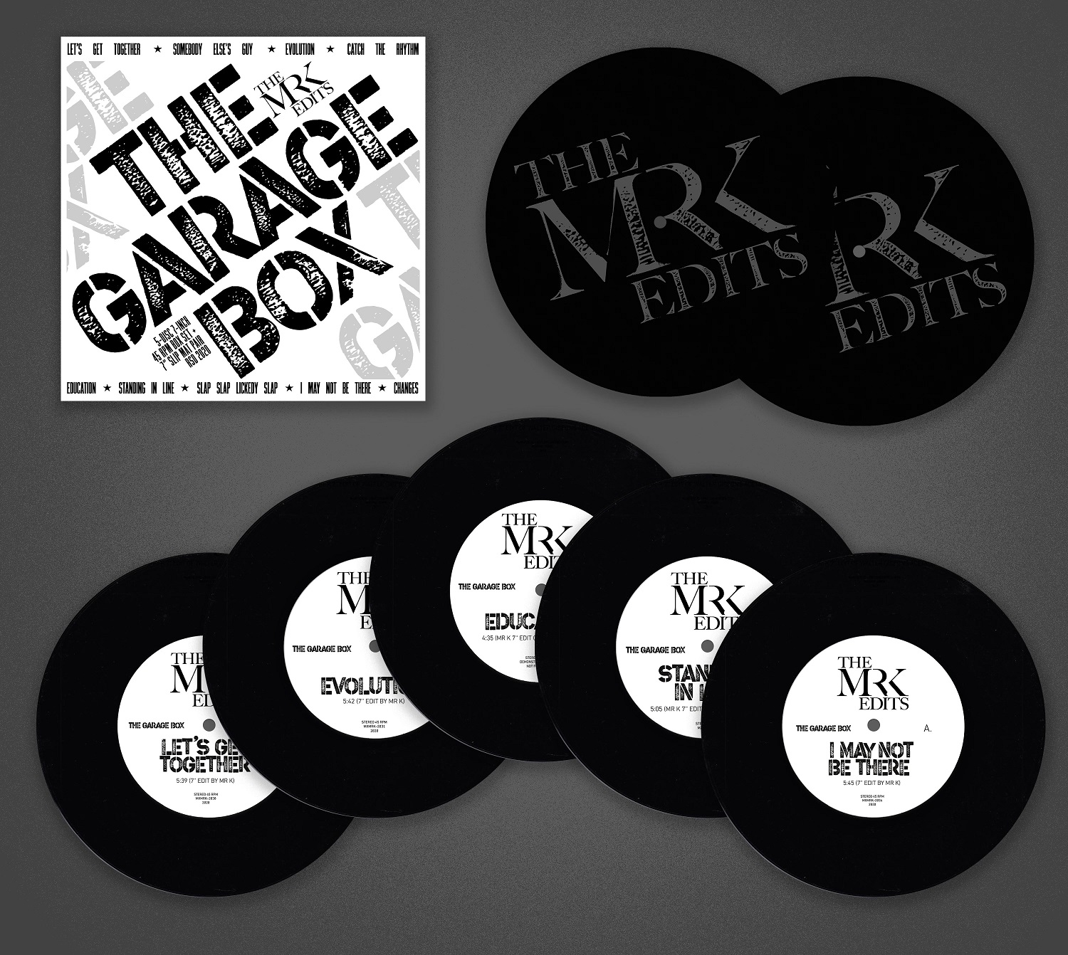 Mr. K and Most Excellent Unlimited are back with another must have motherlode of ten essential cuts on 7-inch, assembling a serious cross-section of diverse jams that were particularly popular at The Garage, majority of which appearing on 7-inch for the very first time in any form, let alone in these unique quintessential edits. Patrick Adams and Greg Carmichael production, female diva classic “Let’s Get Together” backed with a previously unreleased NYC Peech Boys demo version of “Somebody Else’s Guy.” Tough South Bronx funk “Standing In Line”. Synth epic, Krivit’s classic edit of “Evolution”. Disco Funk edit of Larry Levan’s “Slap, Slap, Lickedy Lap”. With much more in this diverse and remarkably sought after tracklist, surprises, like “Catch The Rhythm” (the only Boris Midney production regularly played at The Garage), along with Mr. K’s previously Japan-only edit of Loleatta Holloway tour de force “I May Not Be There When You Want Me”. Five singles impressively mastered with maximum fidelity and playability for an exclusive Record Store Day, including a bonus pair of newly designed, Mr. K seven-inch slipmats.