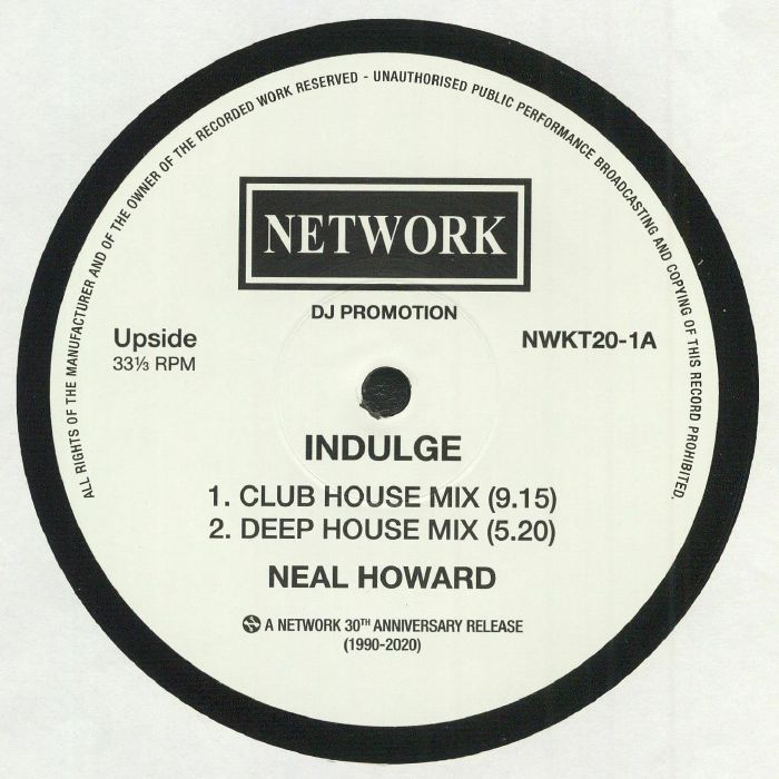 Network’s 30th Anniversary celebrations continue with the re-issue of the debut release from the iconic label. The launch of the logo with Neal Howard “Indulge” in 1990 caused a sensation, with the track being instantly acclaimed as a Classic, and Network noted as a new label to watch.