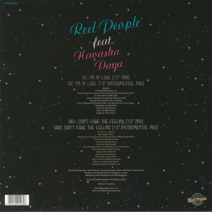 Long-serving soulful house and jazz-funk band Reel Peeple has decided to inaugurate a new series of disco and boogie covers. On the A-side of this first EP they serve up vocal and instrumental covers of Evelyn ‘Champagne’ King electrofunk classic “I’m In Love”. Although these are largely reverentially faithful to the King’s version (even down to the synthesizer settings), they also feel a little more loose and groovy – thanks in no small part to the band’s drummer. On the flipside they opt for a more traditional disco sound on their versions of Geraldine Hunt’s “Can’t Fake This Feeling”. Aside from the additional of some synth strings and warm Rhodes chords, they too are pleasingly faithful to their source material.