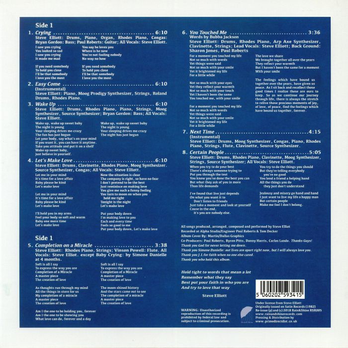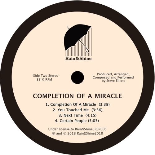 Rain&Shine continue the love for Steve Elliott’s self-produced music by giving his second LP ‘Completion Of A Miracle’ (1982) another lease of life.