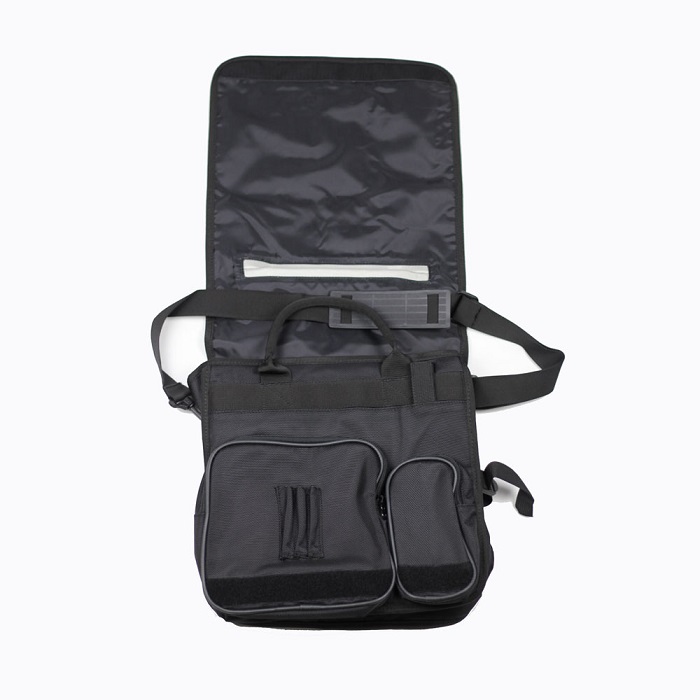 - 2 front pockets with zip closure, 2 large open pockets, 1 at front and 1 at back,1 larger pocket for records