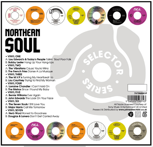 The 1st edition in The Selector Series features a special 7 x 7 Inch box set unearthed from the vaults of Sony Music, containing 14 super-rare, remastered Northern Soul tracks from the Columbia, RCA, Epic, Bell, Okeh and Buddah labels including Lorraine Chandler, Lou Courtney, The Vibrations, John Edwards, The Metros, Herb Ward and The MVPs to name a few – all presented with the best possible reproduction of the original labels.