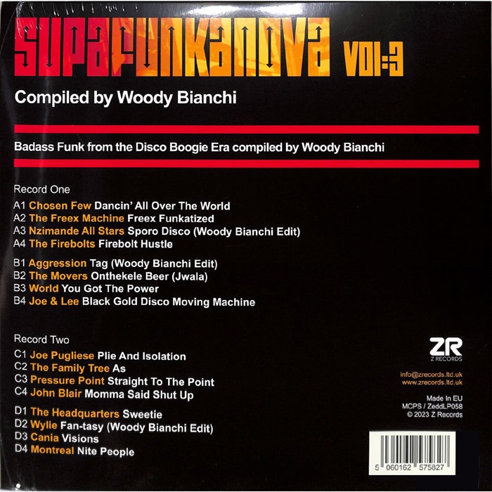 Z Records back with another installment of badass Funk from the Disco era with Supafunkanova Volume 3 which has been selected by prolific DJ, producer, remixer and record collector Woody Bianchi. Woody digs deep into his collection, compiling a high-quality album filled with lesser-known disco, funk and boogie. As the title suggests, Supafunkanova focuses on the funkier end of the 70’s & 80’s, showcasing some of the bumpier grooves recorded in the disco era when even James Brown had to take notice of the Saturday Night Fever inspired disco explosion. It will come as no surprise to hear some particularly hard to find gems have been unearthed here, and ones that aren’t just rare and expensive (if you can even find a copy!) but genuinely merit being re-issued. With expansive sleeve notes by Woody himself to give you an in depth insight to the music, artists and personal discovery of each record.
